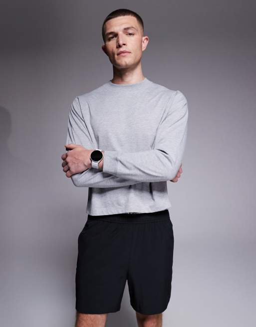 4505 cotton cropped long sleeve weight lifting t-shirt with quick dry finish in heather gray