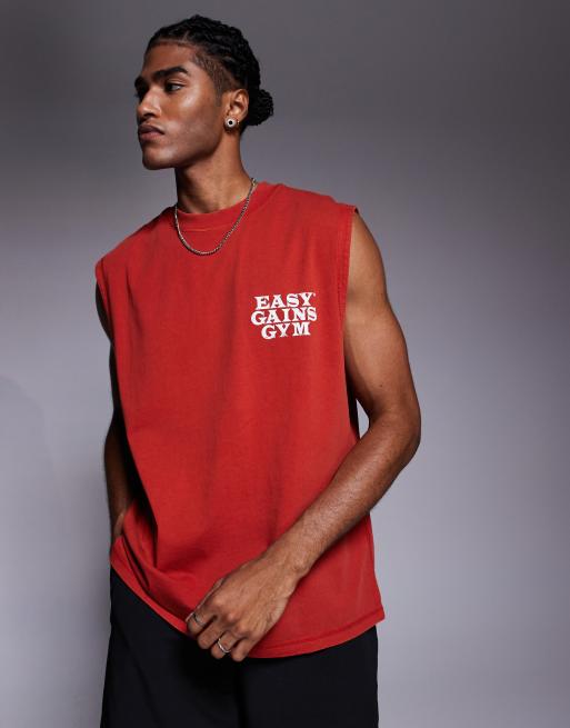 4505 cotton oversized pump training tank top with chest graphic and quick dry finish in washed red
