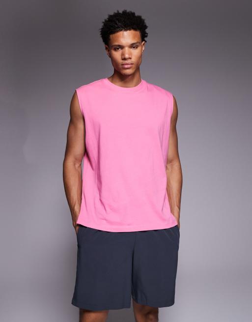 4505 Icon oversized cotton pump training tank top with quick dry finish in washed pink
