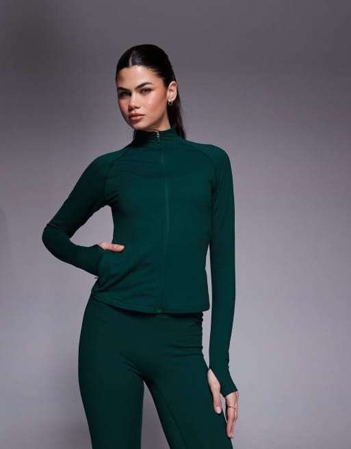 4505 Icon soft touch zip up studio long sleeve top in evergreen