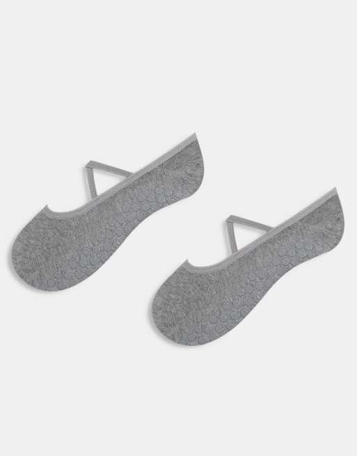 4505 Pilates 2 pack non-slip grip socks with elastic straps in heather gray