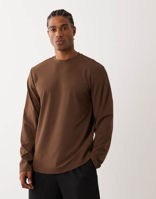 4505 running quick dry performance waffle knit long sleeve top with curved hem in brown