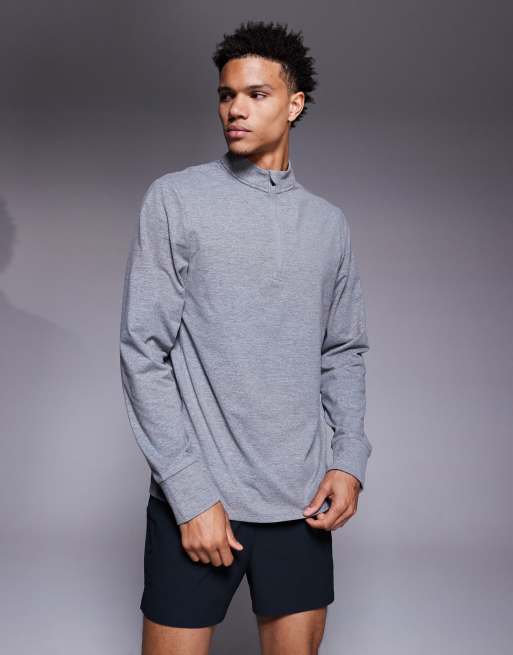 4505 running thermal interlock quarter zip long sleeve training top in gray heather