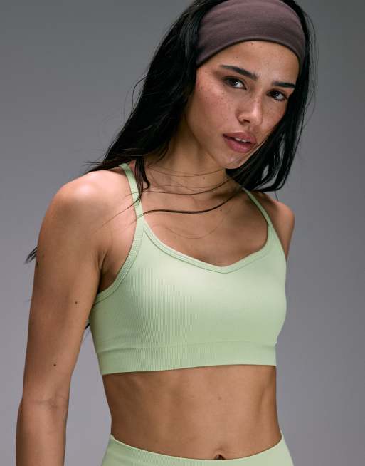 4505 seamless baby rib wrap front short sleeve top in pastel lime