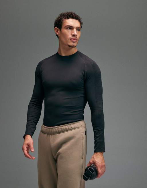 4505 seamless physique defining muscle fit compression base layer long sleeve top in black