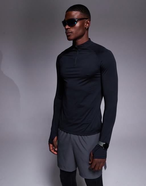 4505 slim fit 1/4 zip base layer long sleeve running top in black