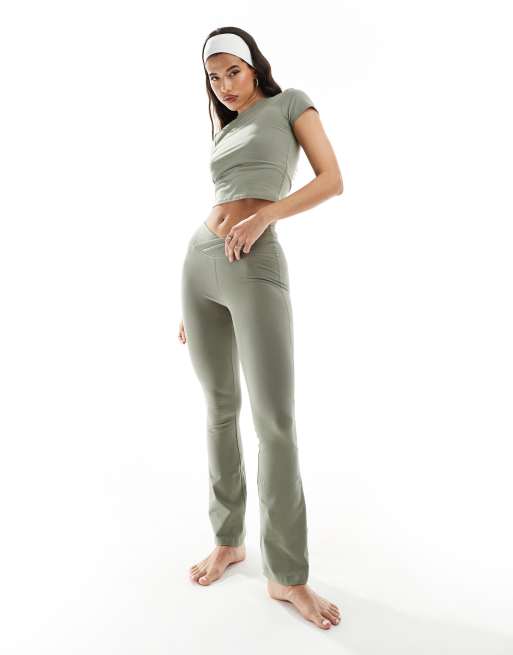 4505 slim kick soft touch leggings with wrap waist in olive green