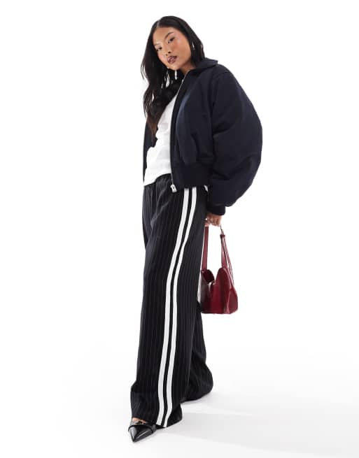 4th & Reckless Petite side stripe wide leg pants in black pinstripe