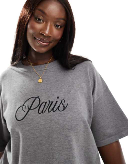 4th & Reckless Plus exclusive knit Paris logo t-shirt in gray