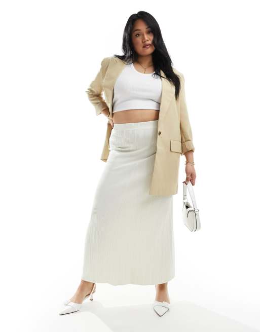 4th & Reckless Plus exclusive rib knit maxi skirt in cream