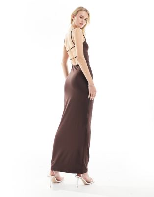 4th & Reckless Tall exclusive cami low back bead detail maxi dress in brown