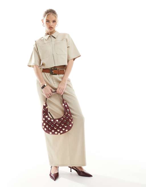4th & Reckless cropped tailored zip through shirt and skirt set in beige