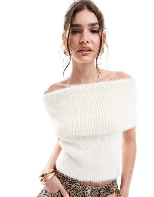 4th & Reckless fluffy rib knit off the shoulder top in cream