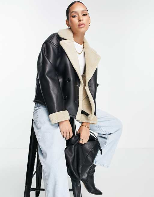 4th & Reckless leather look jacket with contrast cuff in black