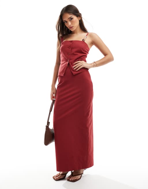 4th & Reckless linen blend fold over bandeau longline top, vest and maxi skirt set in rust