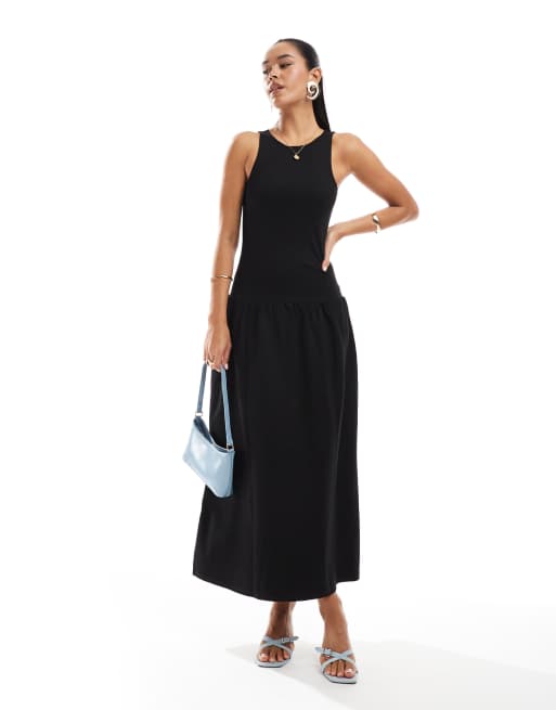 4th & Reckless sleeveless racerneck dropped waist midaxi dress in black