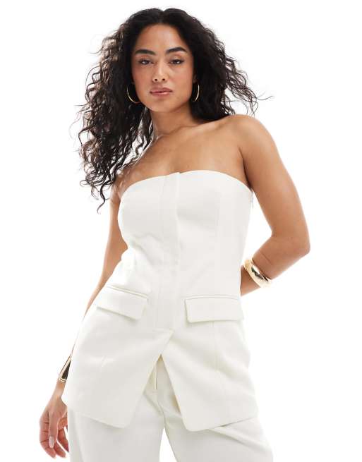 4th & Reckless tailored bandeau split front top in cream - part of a set