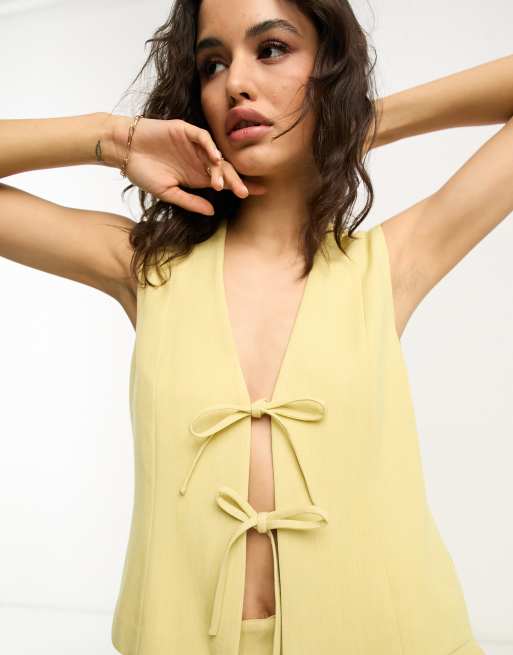 4th & Reckless tie detail vest set in yellow