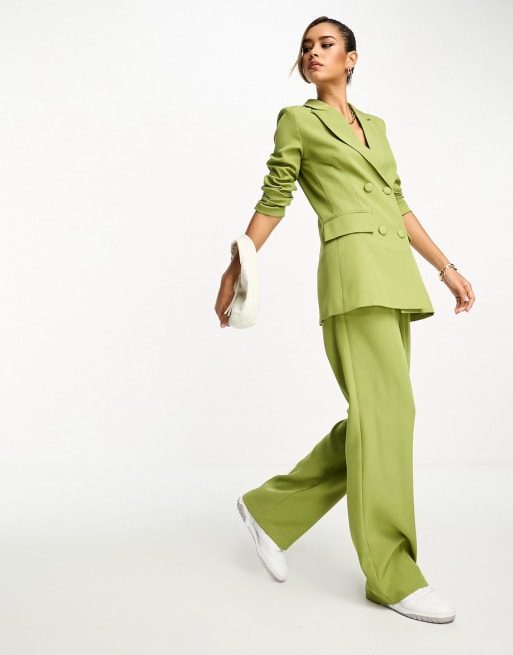 4th & Reckless Webb double breasted blazer and wide leg pants set in olive green