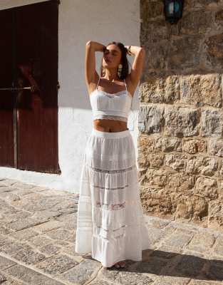 4th & Reckless x Luana Barron linen mix lace trim cropped cami beach top in white - part of a set