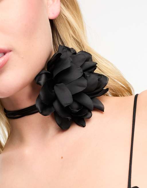 8 Other Reasons statement rose corsage tie necklace in black