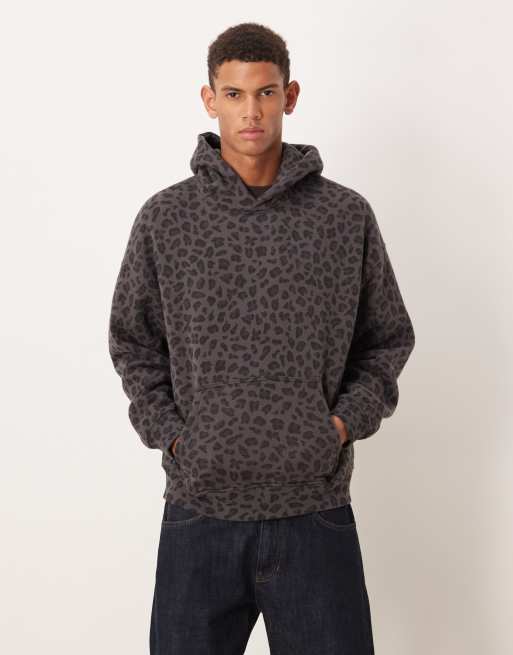 Abercrombie & Fitch essential front pocket hoodie in gray leopard print