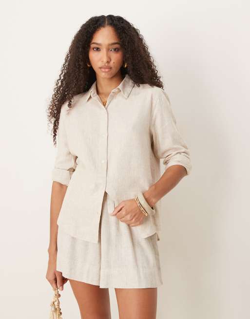 Abercrombie & Fitch long sleeve relaxed linen shirt in gray