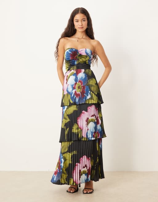 Abercrombie & Fitch strapless tiered satin maxi dress in black floral