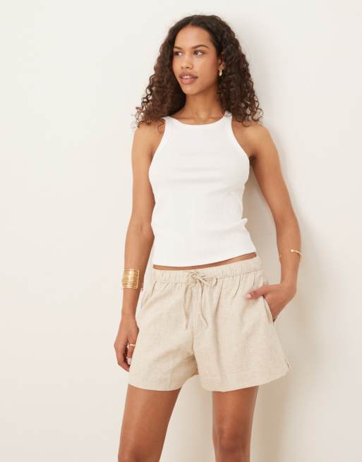 Abercrombie & Fitch tie waist linen mix shorts in oatmeal