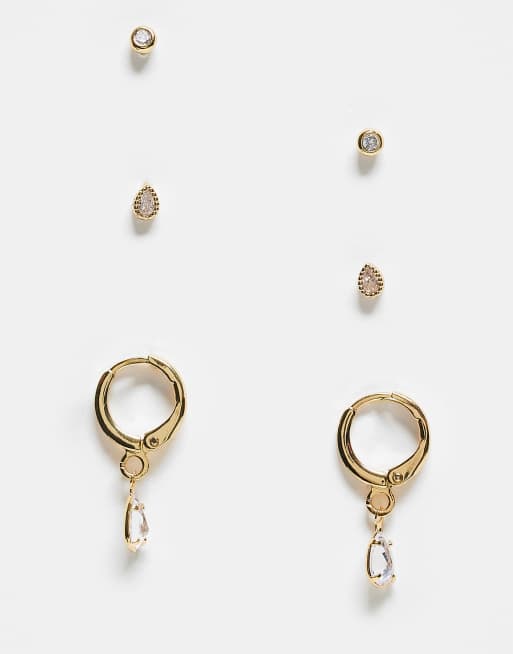 Accessorize 3 pack stone earrings in gold tone
