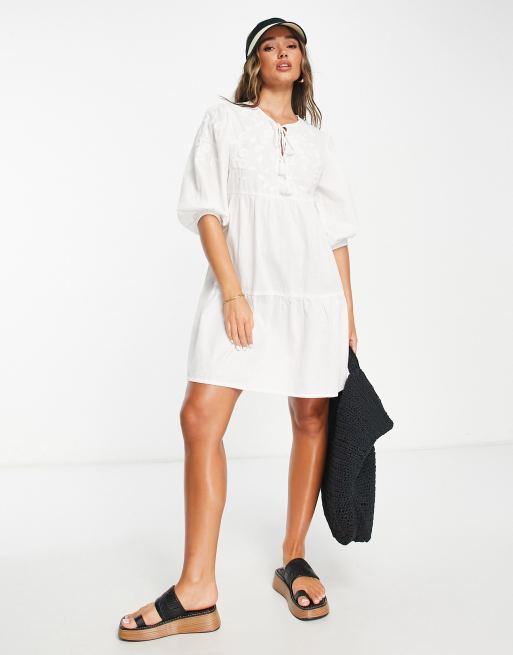 Accessorize embroidered throwover beach summer dress in white