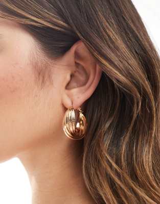 Accessorize textured ridge hoop earrings in gold tone
