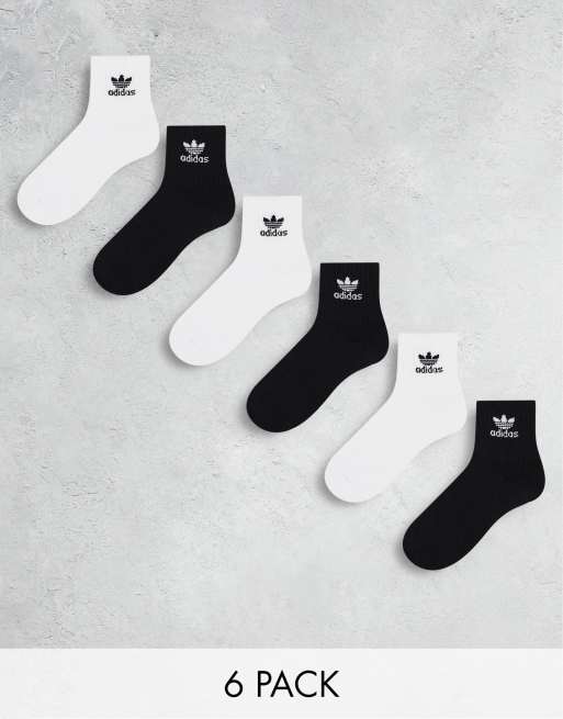 adidas Originals 6 pack quarter socks in black and white