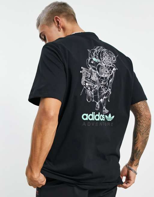 adidas Originals Adventure t-shirt in black with backpack back print