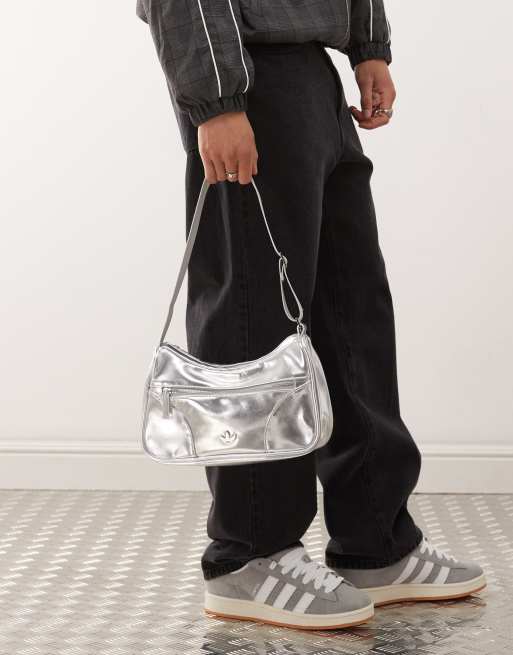 adidas Originals faux leather shoulder bag in silver
