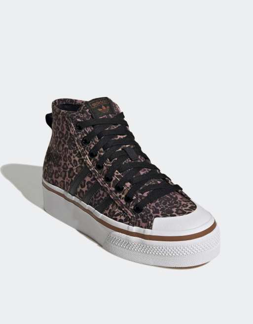 adidas Originals Nizza Platform mid sneakers in black leopard print