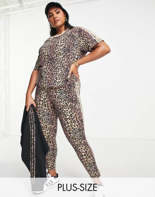 adidas Originals Plus three stripe leopard print leggings in magic beige and black