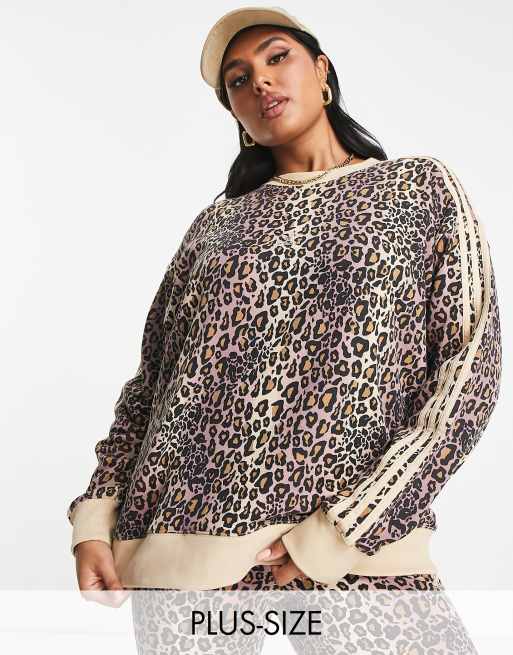 adidas Originals Plus three stripe leopard print sweatshirt in magic beige and black
