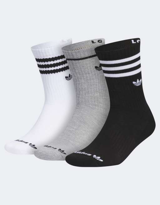 adidas Originals Roller 3 pack crew socks in gray multi