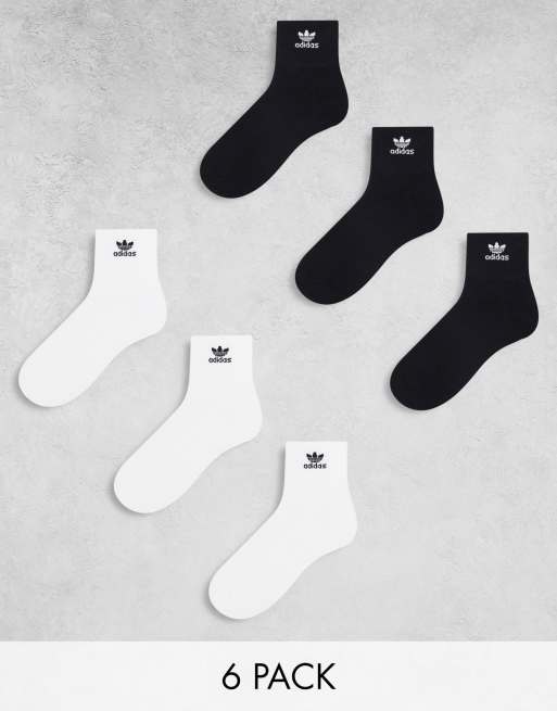 adidas Originals Trefoil 6-Pack Quarter socks in black and white