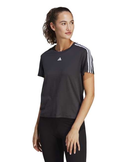 adidas Aeroready Train Essentials 3-Stripes Tee in black and white