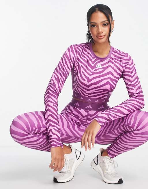 adidas Training Hyperglam zebra print crop top in purple