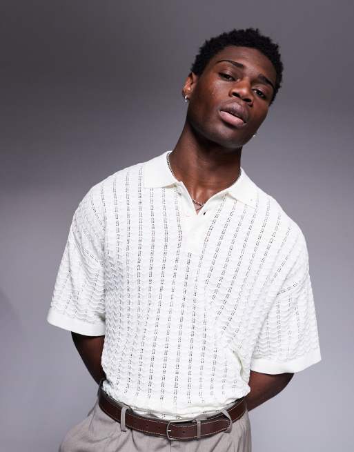 ADPT knit texture polo shirt in white