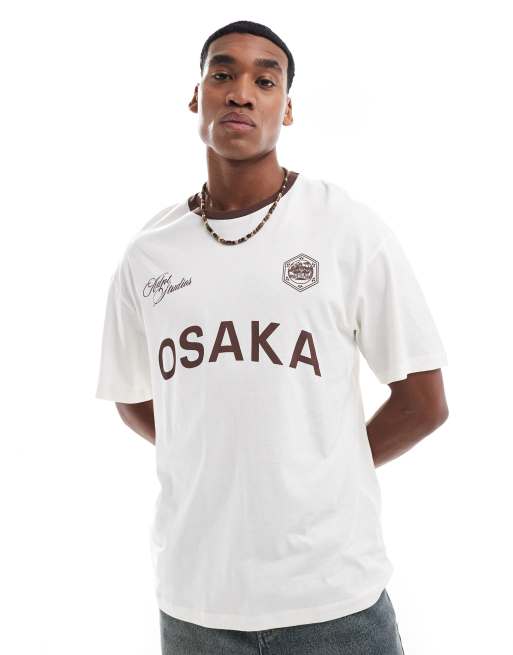 ADPT oversized T-shirt with brown soccer-inspired print in cream