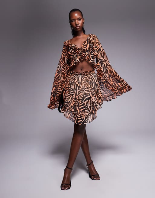 AFRM high waist ruffle shorts in ombre zebra - part of a set
