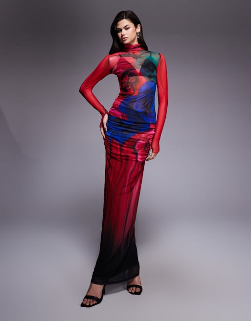 AFRM mesh set in red blurred floral print