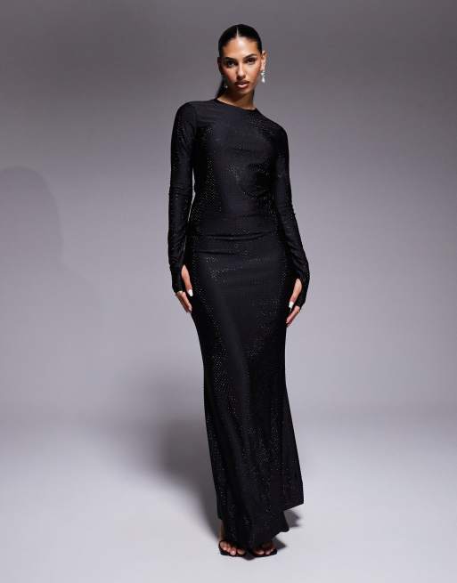 AFRM rhinestone long sleeve thumbhole detail top and maxi skirt set in black