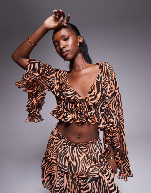 AFRM ruffle sleeve crop top in ombre zebra - part of a set
