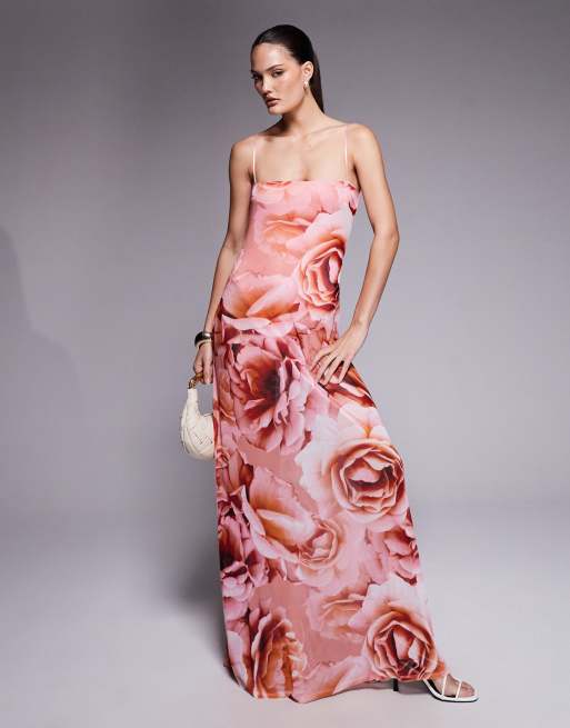 AFRM Shea sheer mesh bodysuit maxi dress in peach roses