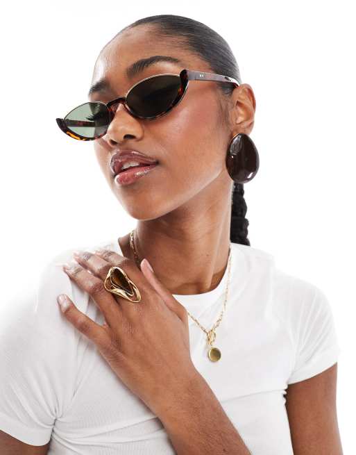 AJ Morgan slim metal cat eye sunglasses in tortoiseshell and green